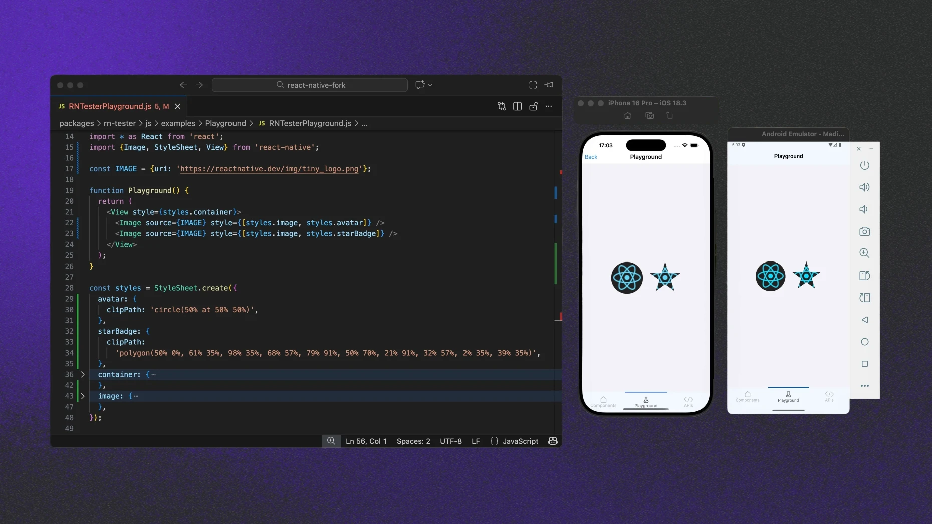 Three PRs that bring clip-path support to React Native are currently under review. When they are merged and released, I hope you’ll build something cool with it!