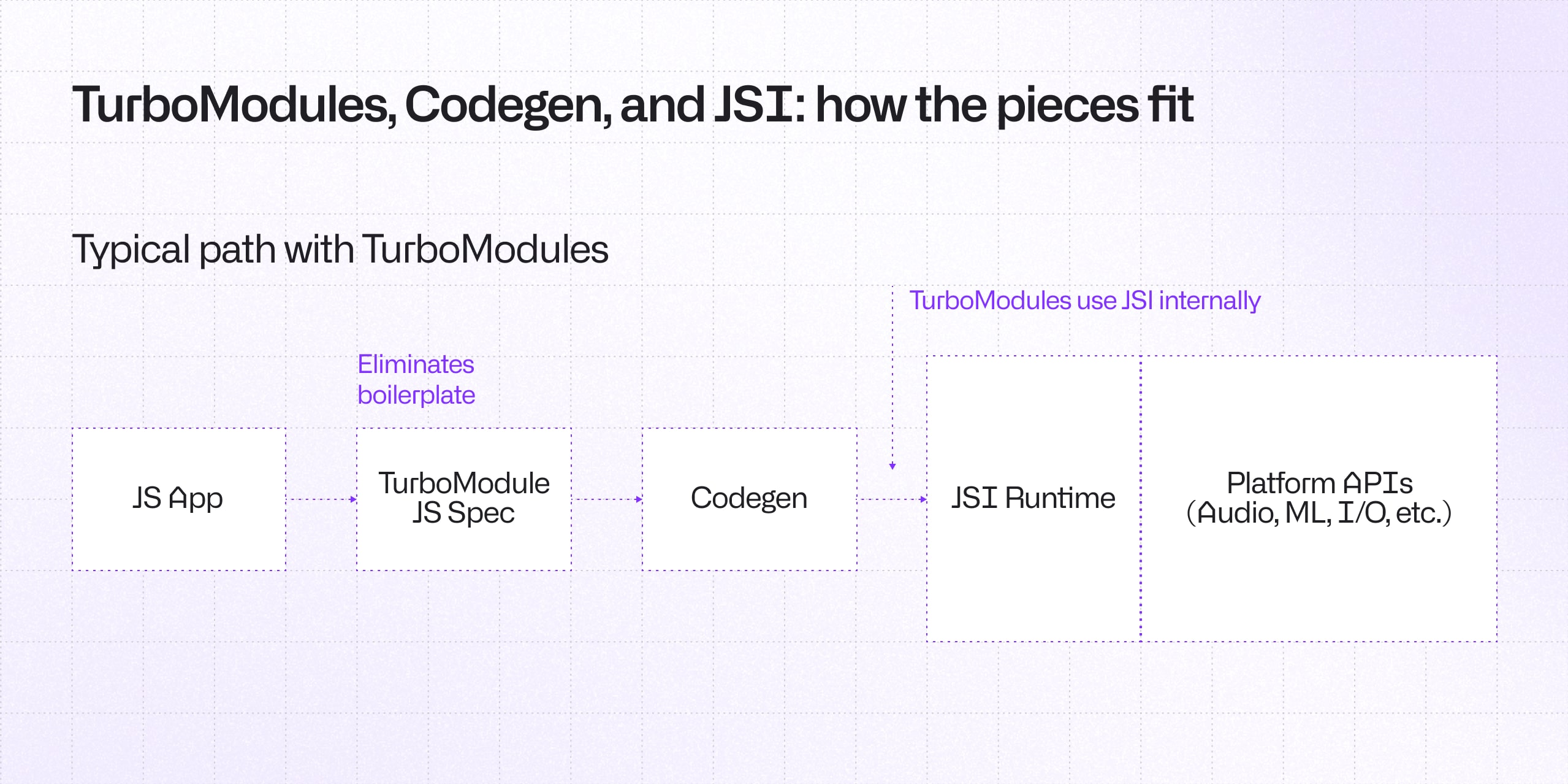 The React Native New Architecture, powered by Fabric and TurboModules, brings major improvements in performance and developer experience. For most cases, TurboModules are the go-to solution: type-safe, auto-generated bindings that eliminate boilerplate and bridge overhead. But sometimes you need more. Sometimes the abstractions don’t cover your exact use case.