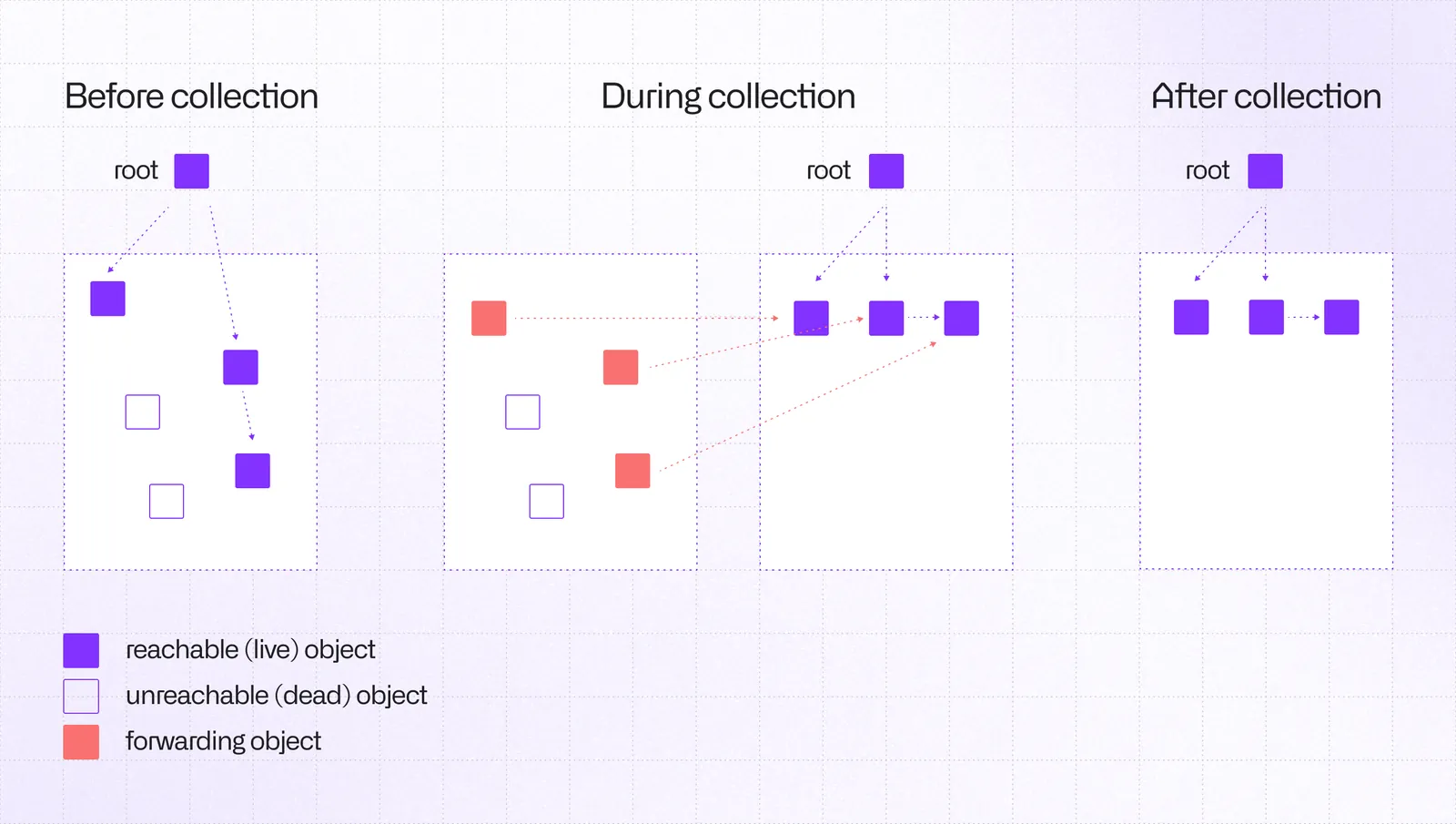 When your ArrayBuffer becomes unreachable (no references from any GC roots), the collector eventually kicks in. It marks reachable objects, sweeps away the unmarked ones, and optionally compacts memory to reduce fragmentation (moving objects closer together to eliminate gaps left by freed objects). You don't get to choose when this happens.