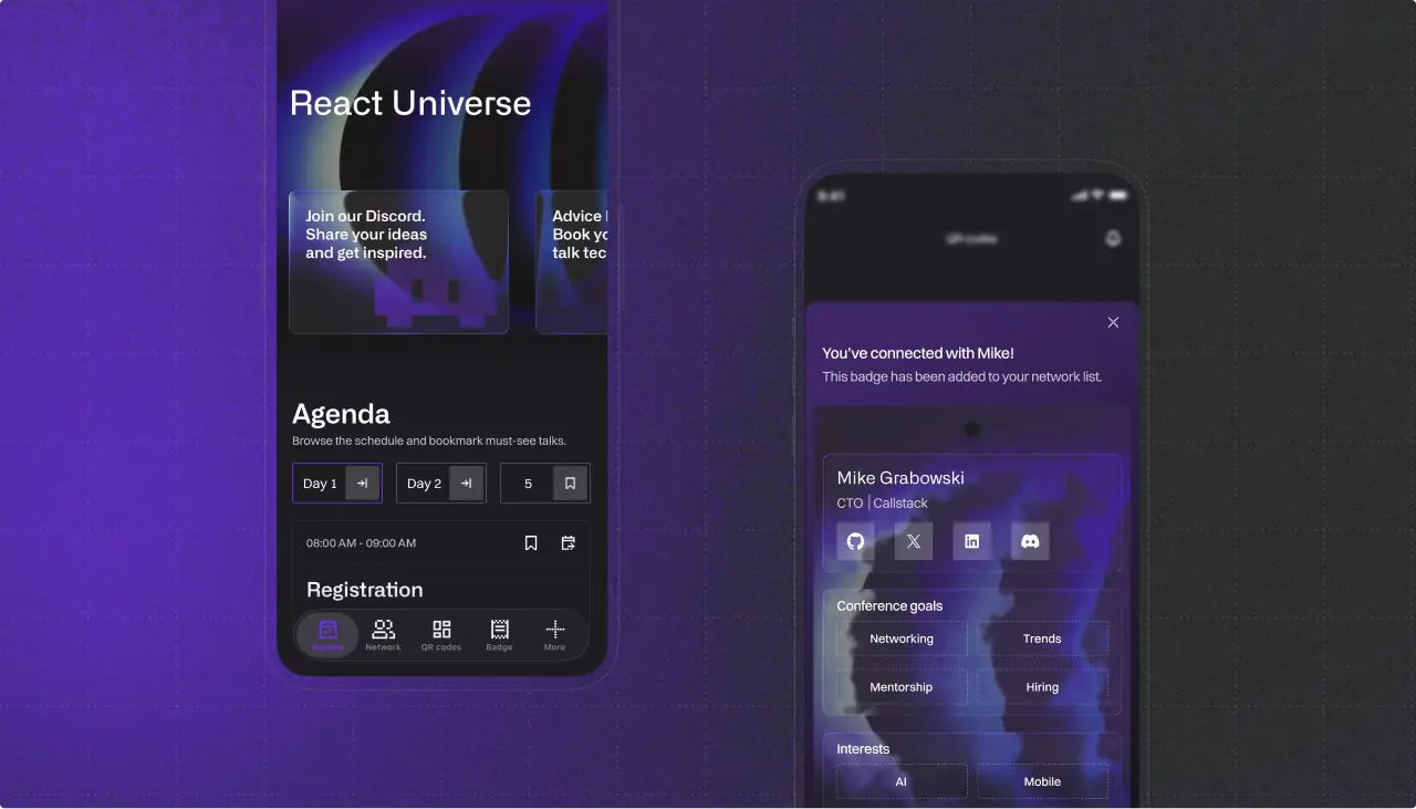 A great developer conference is equally about talks and schedules as it is about connecting with people. For our flagship React Universe Conf, Callstack set out to create a digital companion app that went beyond the agenda and made networking effortless.